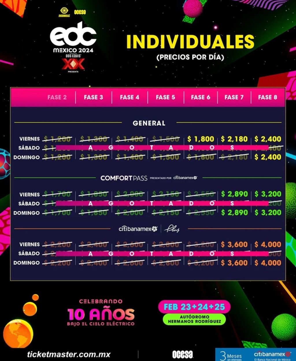 Electric Daisy Carnival (EDC) México es uno de los eventos de música electrónica más importantes del país, se va a llevar a cabo los días 23, 24 y 25 de febrero de 2024 en el mítico Autódromo Hermanos Rodríguez.